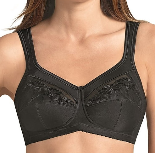 Dzięki obustronnym kieszonkom na protezy, wykonanym z miękkiej i oddychającej dzianiny dżersejowej, model ten jest niezwykle wygodny i delikatny dla skóry. Szerokie, podszyte pianką ramiączka zmniejszają nacisk na ramiona, a pełne miseczki z haftowanym tiulem optycznie wyrównują obie strony biustu, dodając biustonoszowi lekkości i kobiecego wyglądu.