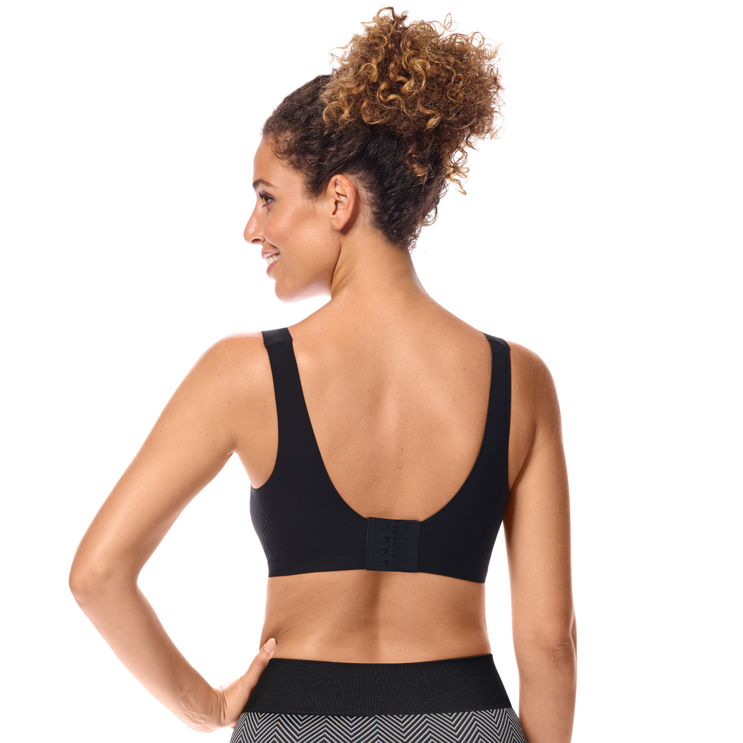 Posiada bezszwowe miseczki z miejscem na protezę, wymienne wkładki piankowe do wyrównywania asymetrii oraz technologię masującą przy ruchu. Szerokie, miękkie ramiączka i elastyczny pas pod biustem zapewniają wygodę.