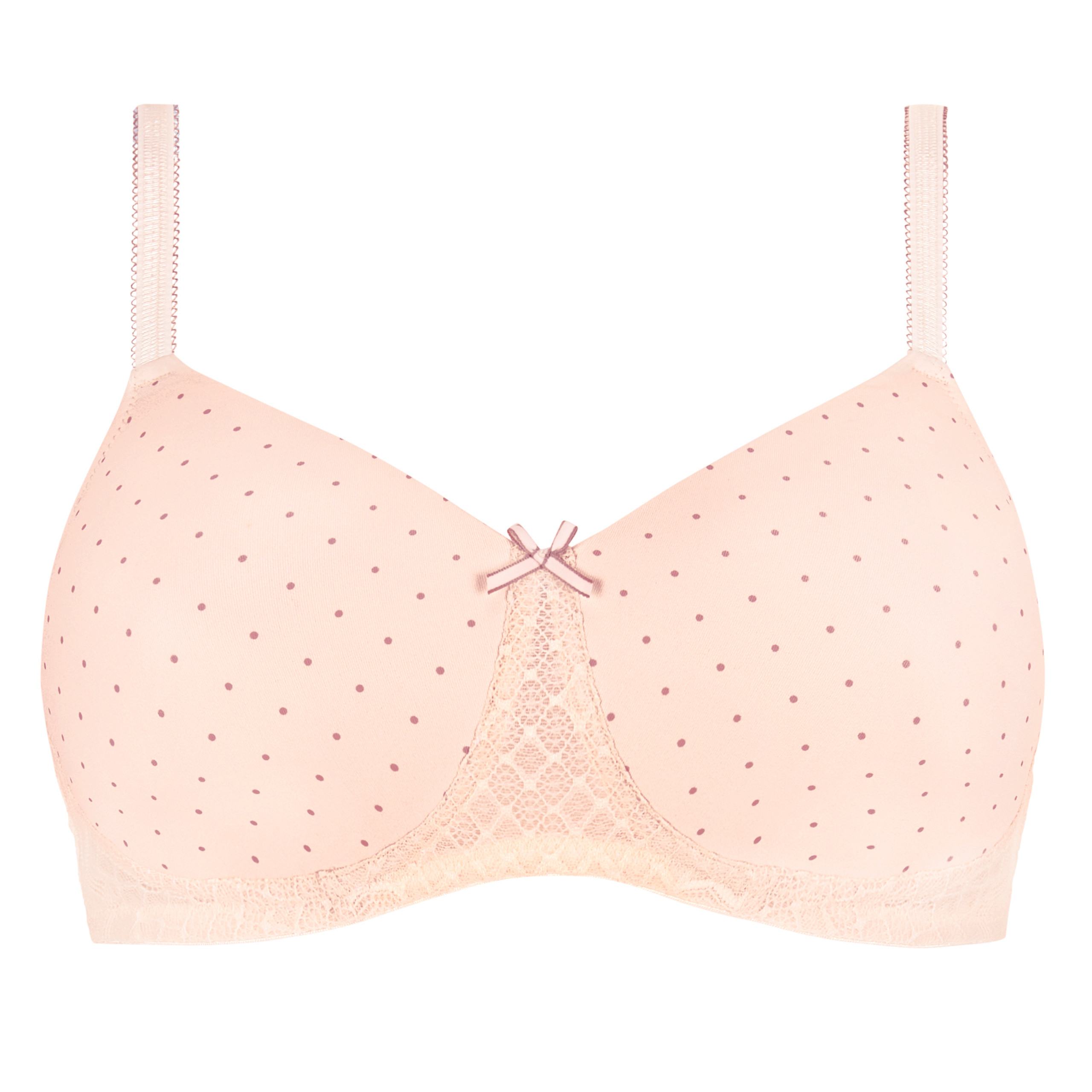 Biustonosz usztywniany bez fiszbin Anna SBP jest ozdobiony uroczym, wiosennym wzorem, który łączy koronkę z delikatnymi kropkami, zapewniając świeży i modny wygląd. Posiada obustronne kieszonki do protez piersi.