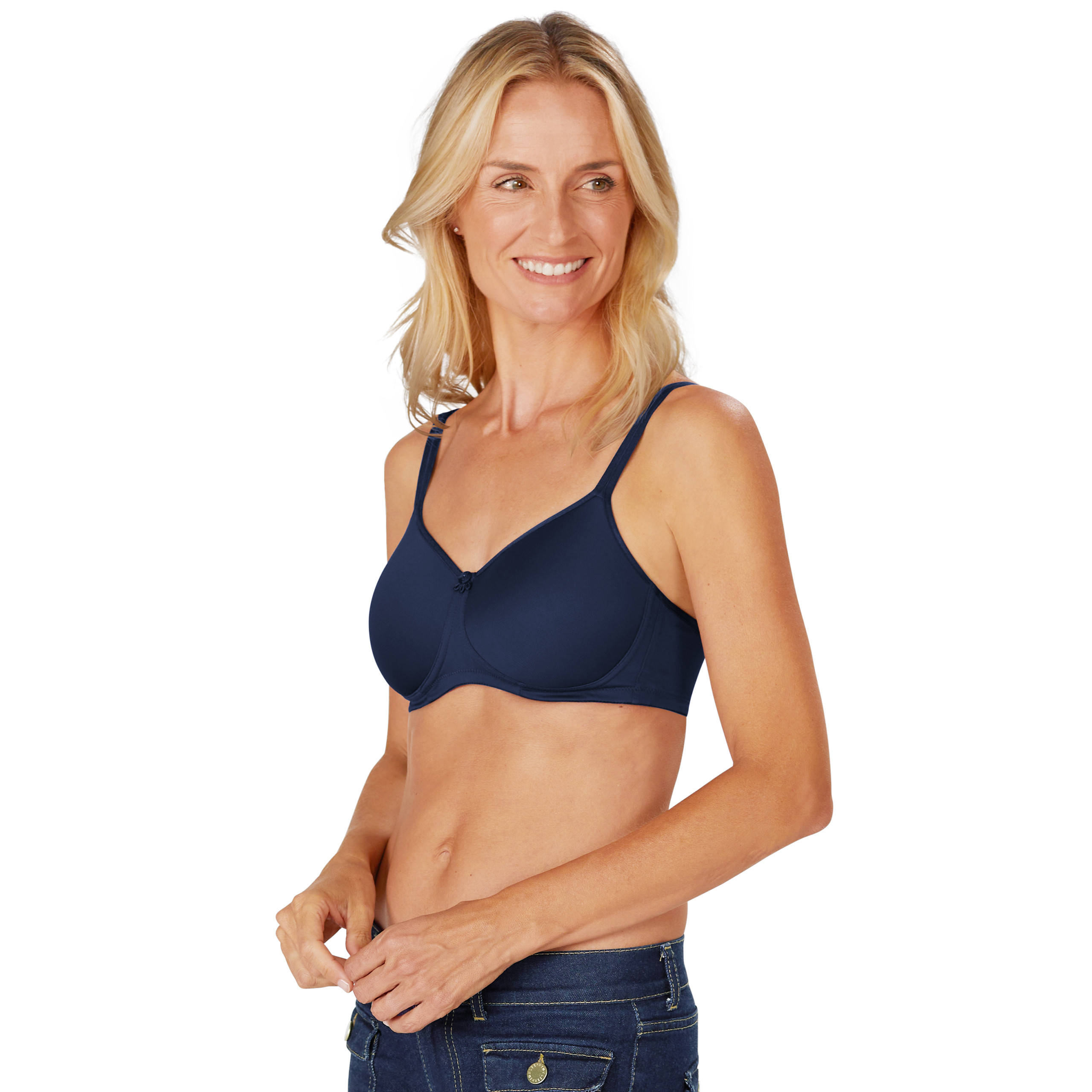 Biustonosz Mara w kolorze granatowym to doskonały biustonosz do noszenia na co dzień. Obustronne kieszonki bezpiecznie utrzymują na miejscu protezę lub nakładkę uzupełniającą.