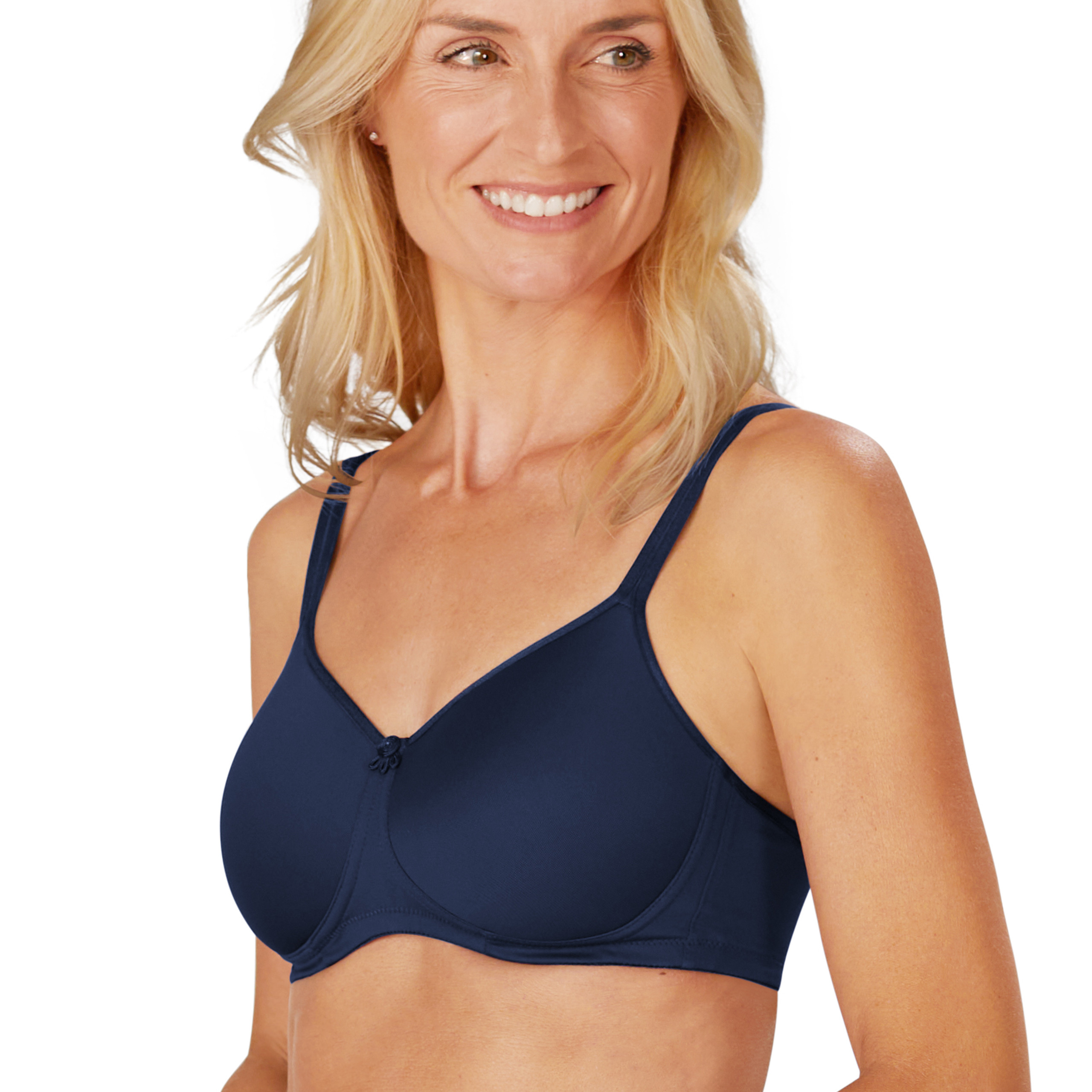 Biustonosz Mara w kolorze granatowym to doskonały biustonosz do noszenia na co dzień. Obustronne kieszonki bezpiecznie utrzymują na miejscu protezę lub nakładkę uzupełniającą.