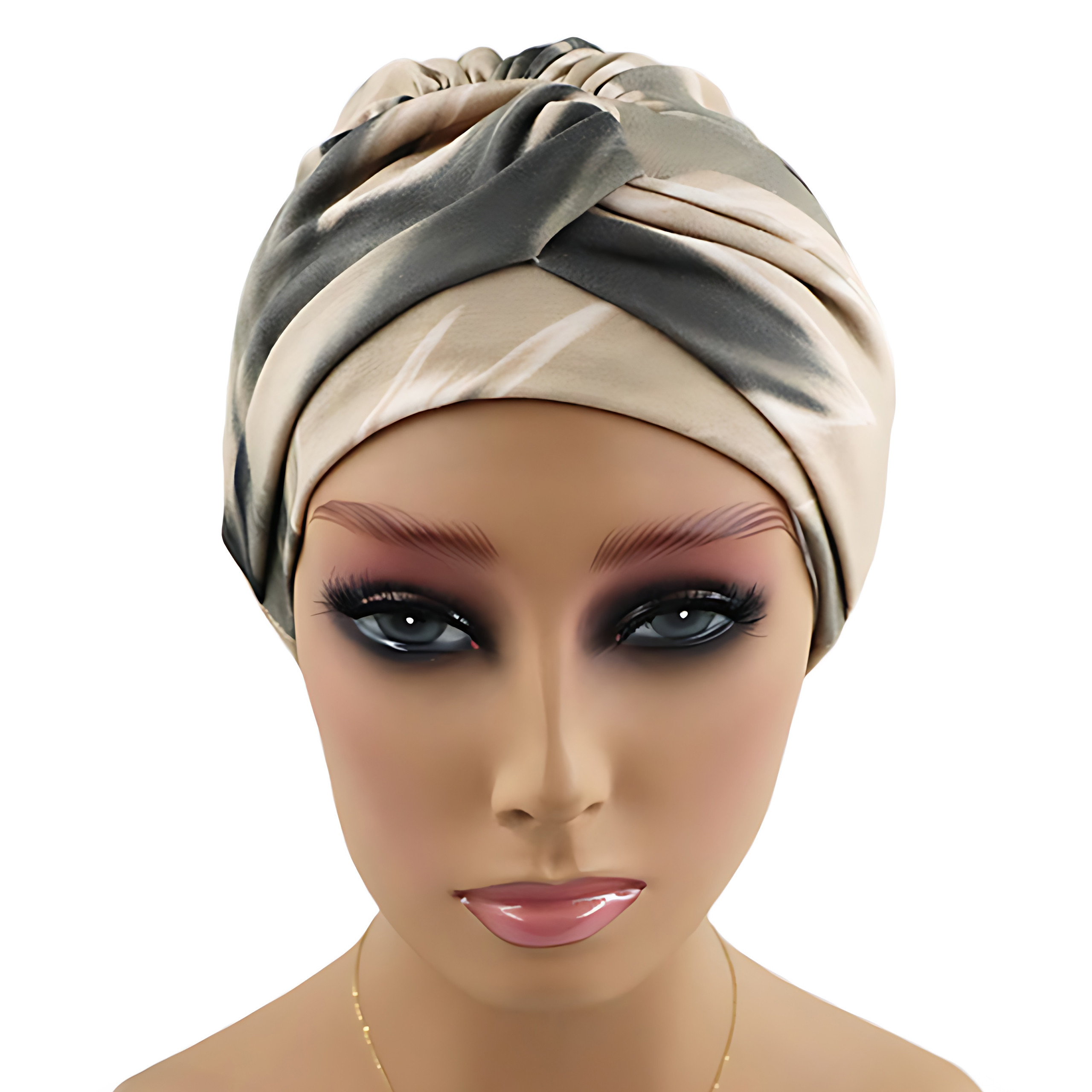 Przyjemny dla skóry turban uszyty z bambusowej wiskozy w różnych odcieniach i wzorach do wyboru. Jest to model gotowy do nałożenia, nie wymaga formowania na głowie ani zawiązywania. Rozmiar jest uniwersalny, dzięki czemu pasuje na różne obwody głowy.
