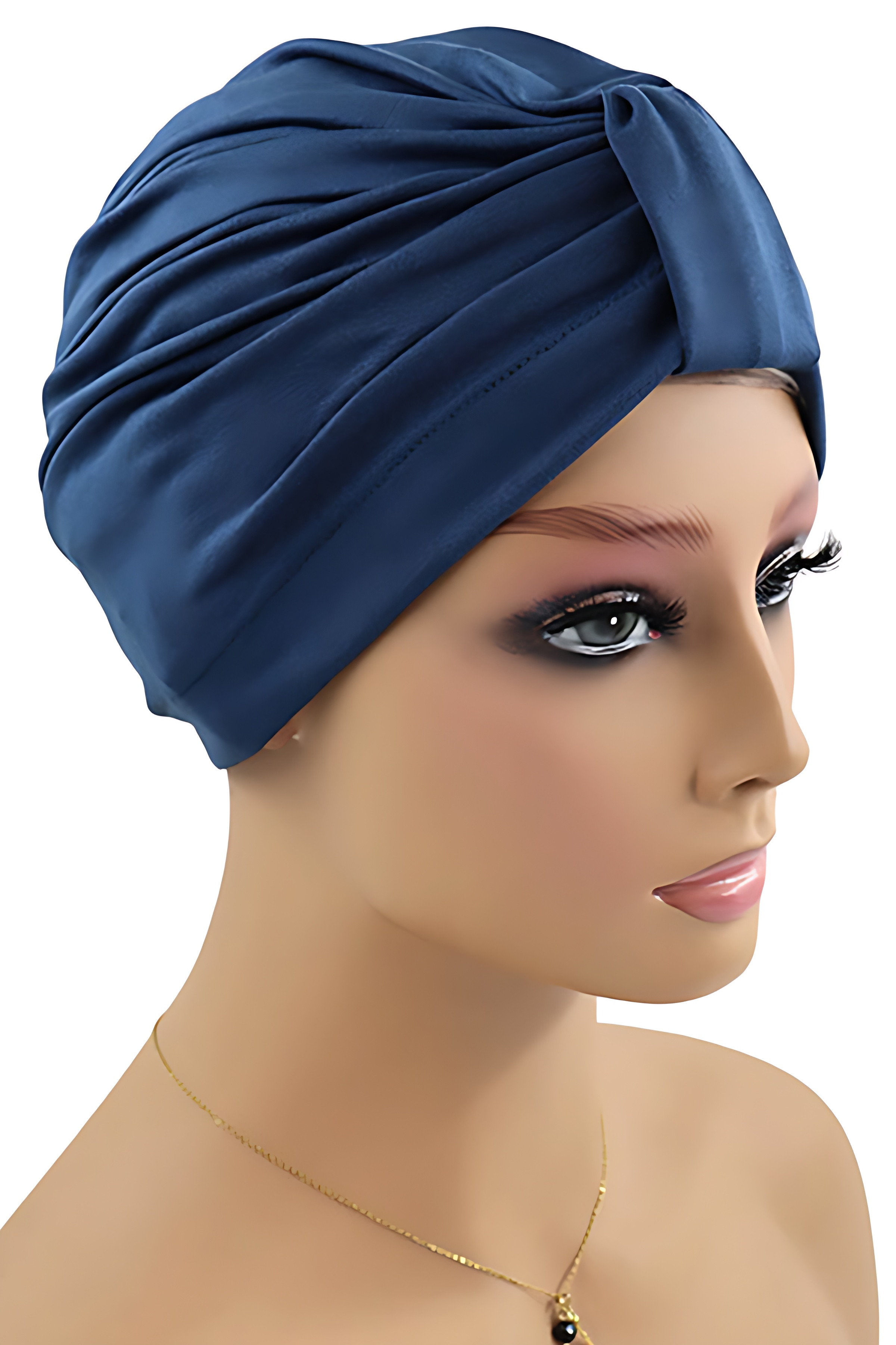 Przyjemny dla skóry turban uszyty z bambusowej wiskozy w różnych odcieniach i wzorach do wyboru. Jest to model gotowy do nałożenia, nie wymaga formowania na głowie ani zawiązywania. Rozmiar jest uniwersalny, dzięki czemu pasuje na różne obwody głowy. Turban z ozdobnym spięciem i marszczeniami.