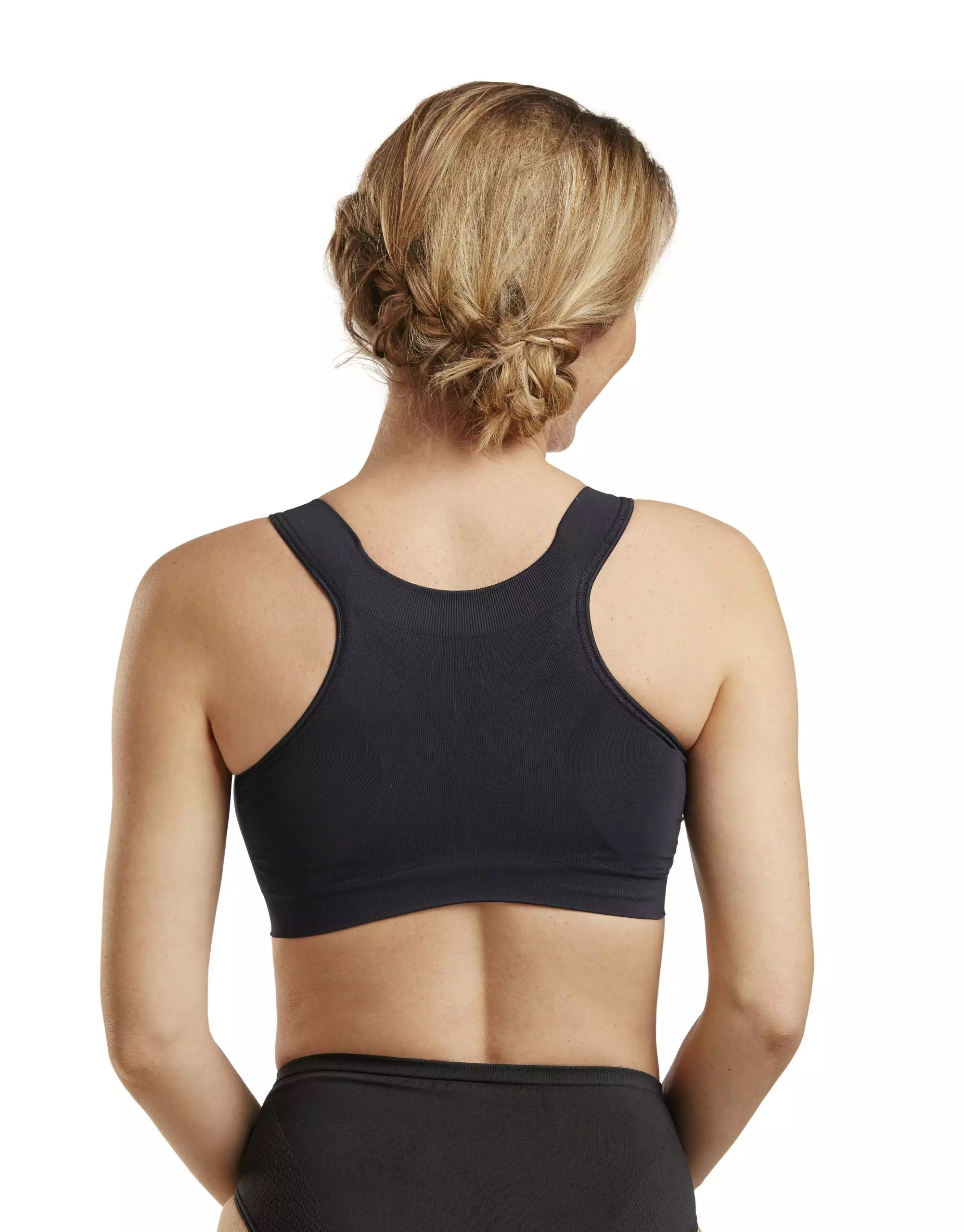 Biustonosz pooperacyjny Carefix Mary w kolorze czarnym jest bezszwowy, ale oferuje również zintegrowane strefy podtrzymujące i uciskowe dla uzyskania najlepszych rezultatów chirurgicznych. Biustonosz kompresujący jest przeznaczony do rekonwalescencji po zabiegu chirurgicznym piersi, gdy skóra jest delikatna i wrażliwa oraz gdy zalecane jest wsparcie i ucisk.