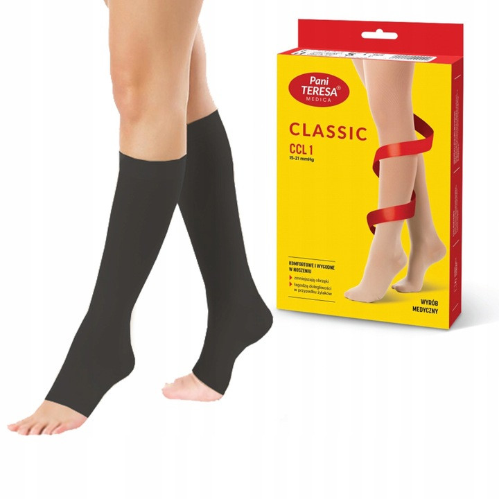 Pończochy Przeciwżylakowe Pani Teresa 1 klasa kompresji Otwarte Krótkie PT 0406 Czarne - Pończochy medyczne uciskowe
