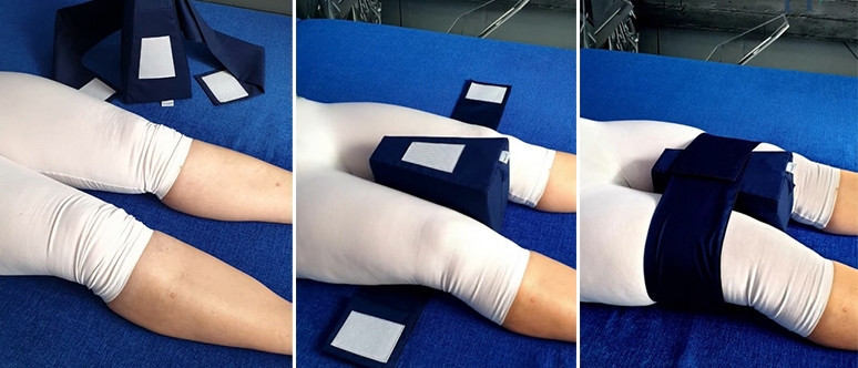 Klin należy umieścić pod kolanami lub między nogami, zgodnie z zaleceniami rehabilitanta lub lekarza prowadzącego. Pasuje idealnie do codziennego użytku w warunkach domowych lub w placówkach rehabilitacyjnych, a rzepy pozwalają na szybkie dopasowanie klinu do indywidualnych potrzeb.