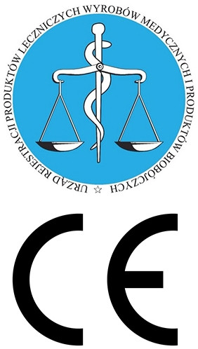 Produkt jest zarejestrowany w Urzędzie Rejestracji Produktów Leczniczych, Wyrobów Medycznych i Produktów Biobójczych jako WYRÓB MEDYCZNY i spełnia wynikające z tego bardzo rygorystyczne normy, gwarantuje bezpieczeństwo i jakość.