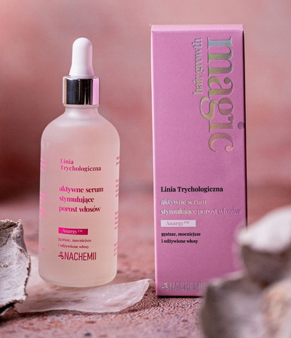Serum stymulujące porost włosów Nachemii to innowacyjny produkt opracowany z myślą o osobach zmagających się z nadmiernym wypadaniem włosów, pragnących zwiększyć ich gęstość, a także tych, które potrzebują wzmocnienia i regeneracji pasm. Może być stosowane przez osoby po leczeniu onkologicznym oraz każdego, kto boryka się z problemem wypadających lub osłabionych włosów. Dzięki unikalnej formule zawierającej składnik Anargy™ serum reaktywuje cebulki włosowe, wydłuża fazę anagenu (aktywnego wzrostu włosa), ogranicza wypadanie oraz wspomaga wzrost nowych, mocniejszych włosów.