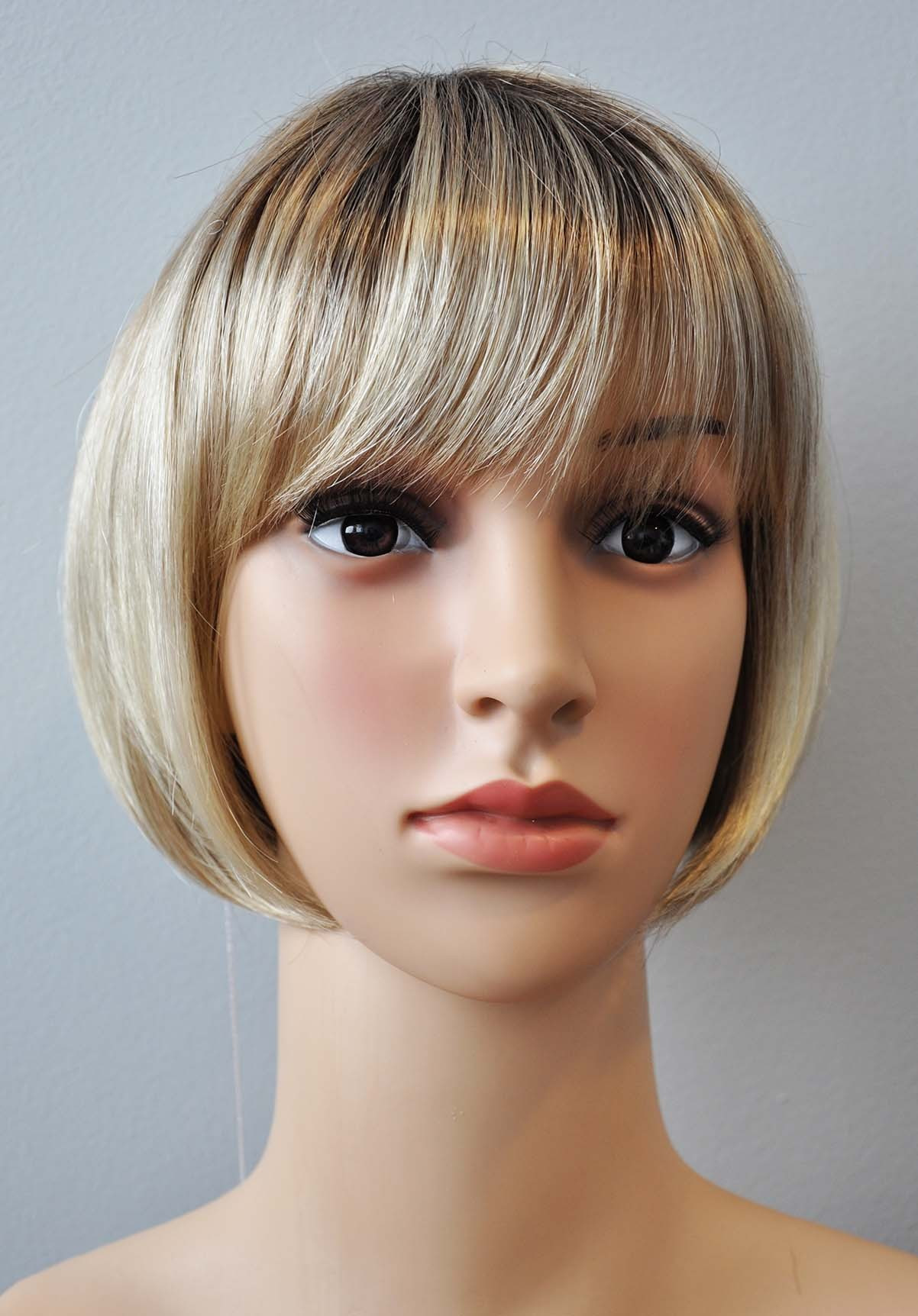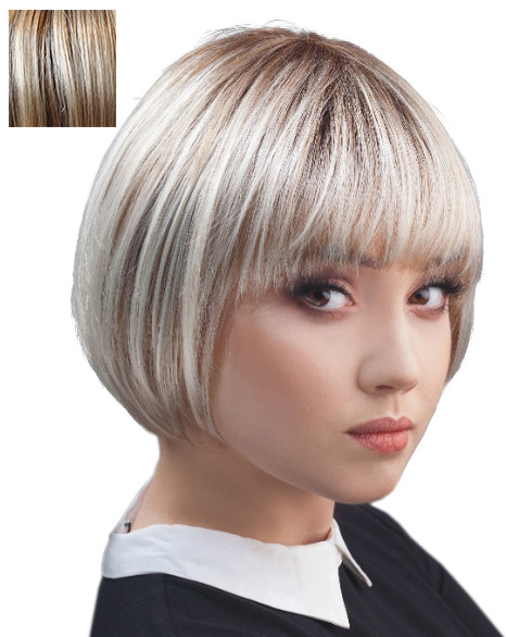 Model fryzury to elegancki krótki bob z grzywką, który idealnie układa się na głowie, podkreślając rysy twarzy i dodając klasy każdej stylizacji. Kolor blond włosów (odcień 14/88H+8) harmonizuje z różnymi typami urody, nadając ciepłego i eleganckiego charakteru.