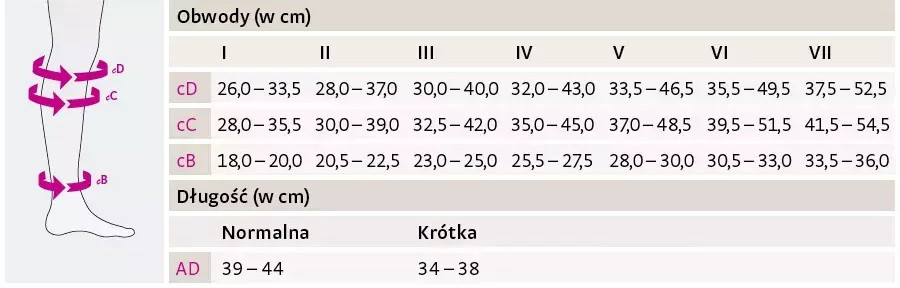 Wszystkie pomiary powinny być wykonywane na gołej nodze, w centymetrach.