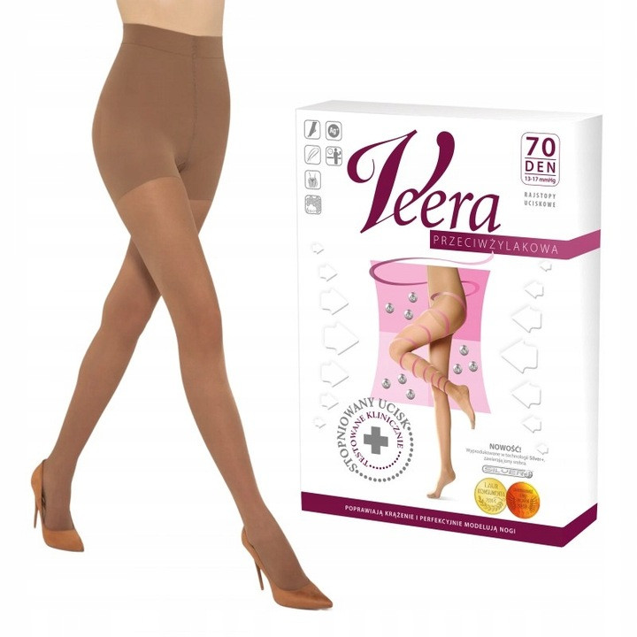 Rajstopy przeciwżylakowe ucisk profilaktyczny Veera jasny orzech 70 DEN