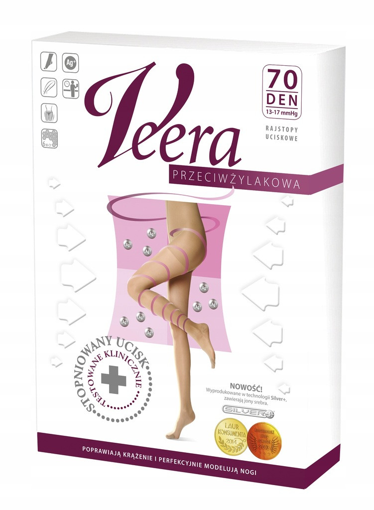 Najwyższej jakości eleganckie rajstopy Veera ze stopniowanym uciskiem. Poprawiają krążenie i perfekcyjnie modelują sylwetkę.