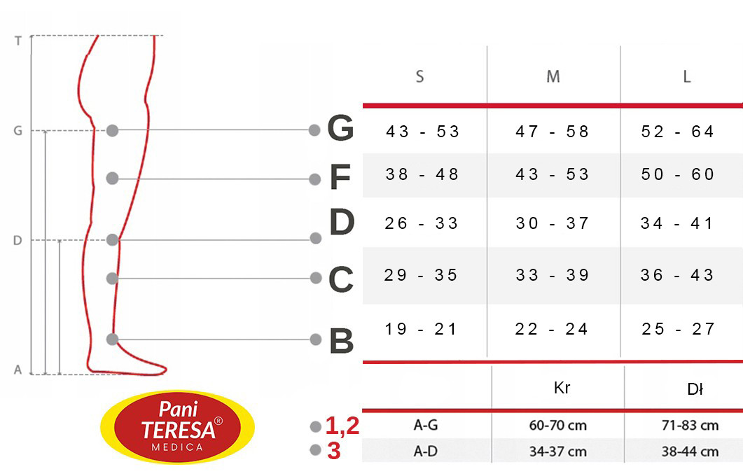 Mierzymy obie nogi. Jeśli prawa i lewa noga różnią się znacząco wymiarami, należy zamówić dwa różne rozmiarowo produkty, lub uszyć produkt kompresyjny na miarę.