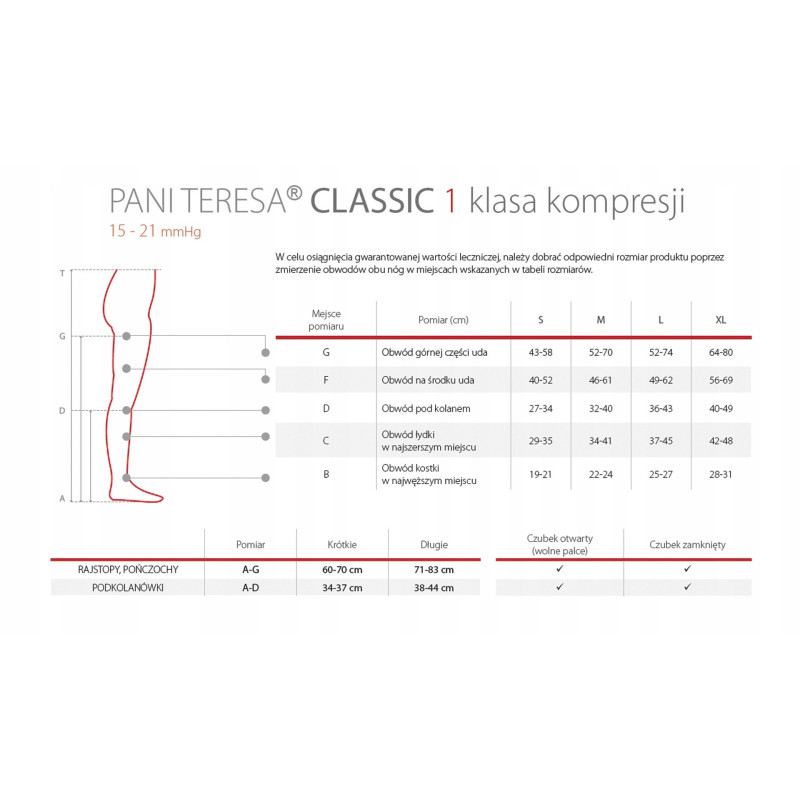 Klasa kompresji: 1 klasa kompresji (15 - 21 mmHg)