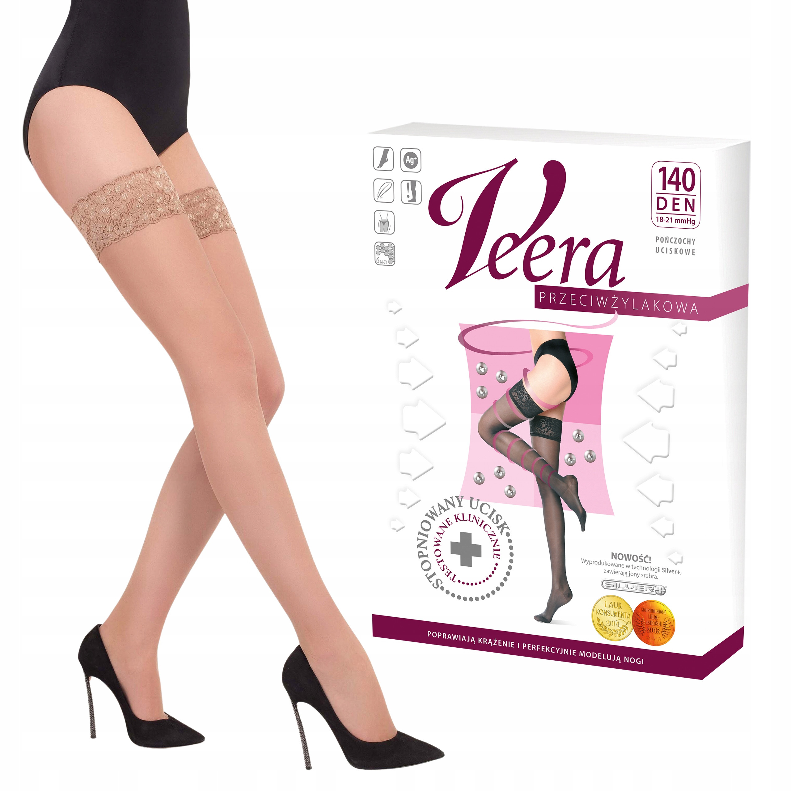 Pończochy Przeciwżylakowe Veera 140 den karmel I Klasa Ucisku