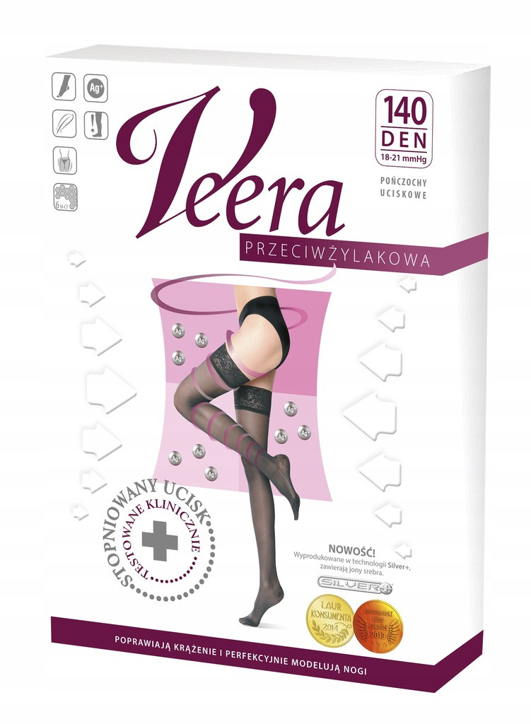 Najwyższej jakości eleganckie pończochy Veera ze stopniowanym uciskiem. Poprawiają krążenie i perfekcyjnie modelują sylwetkę.
