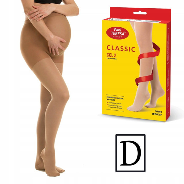 Rajstopy Przeciwżylakowe ciążowe Pani Teresa uciskowe 1 klasa kompresji krótkie PT 0411 Beżowe