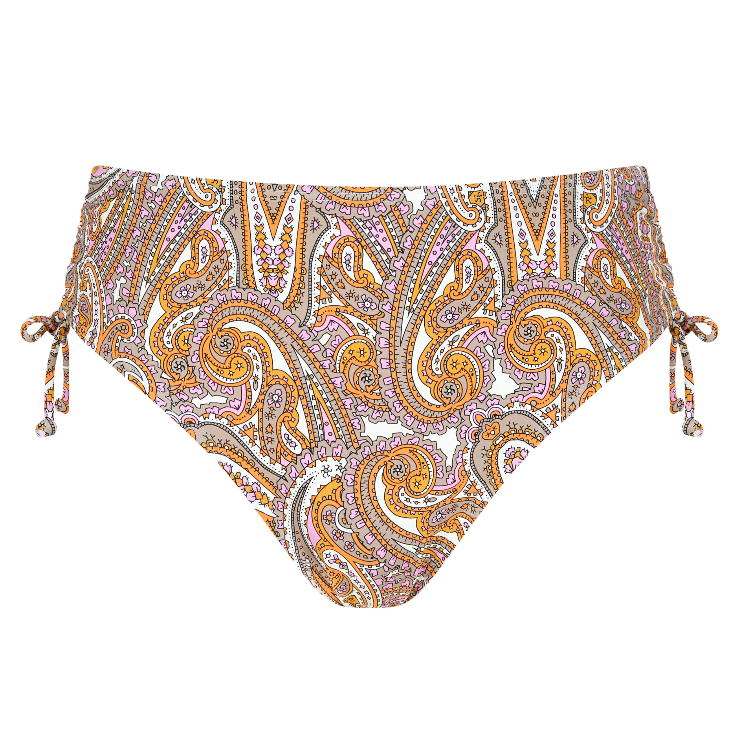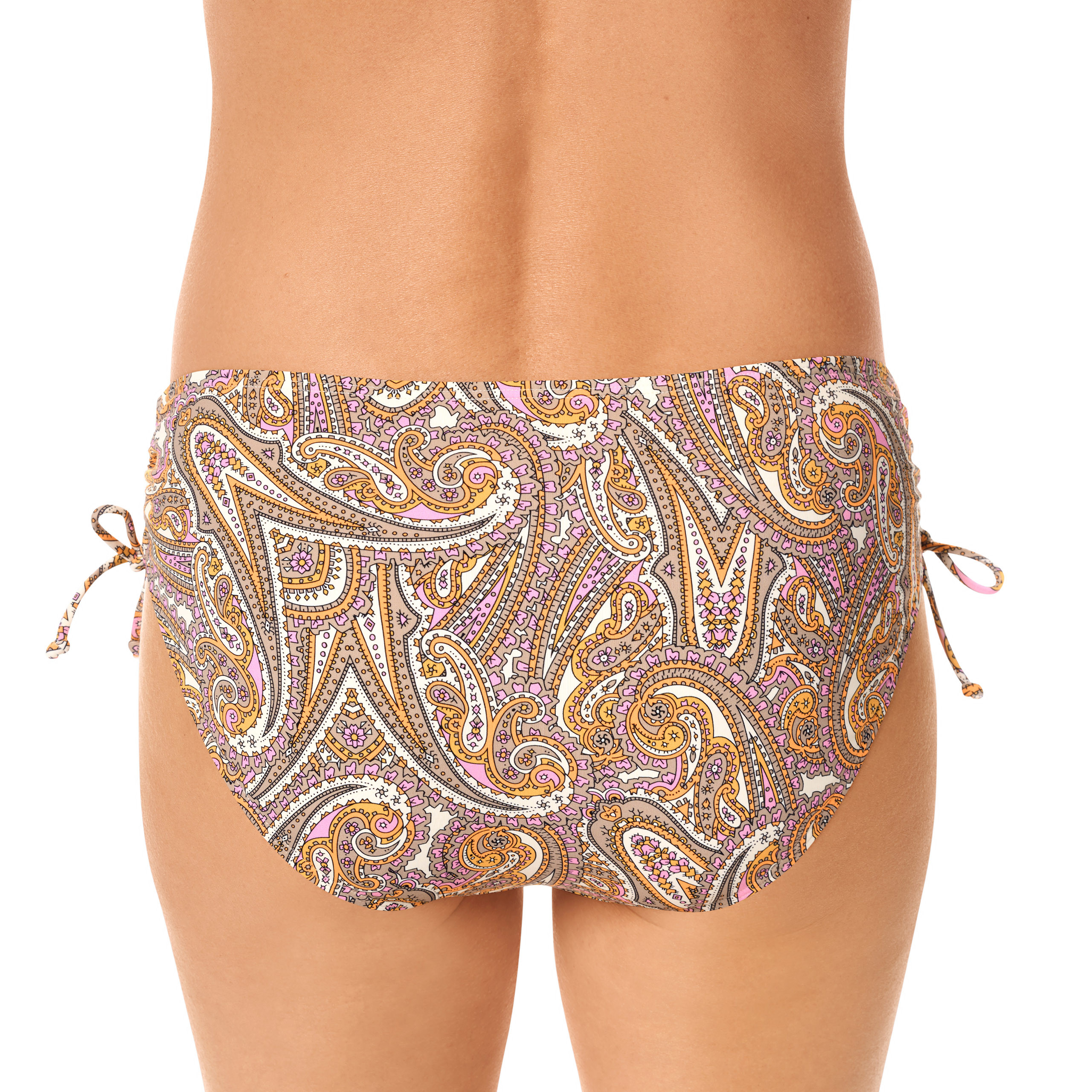 Eleganckie figi kąpielowe z wysokim stanem z pięknym nadrukiem paisley (wzór turecki z kształtem łezki). Dół od stroju kąpielowego został wykonany z miękkiej mikrofibry, która zapewnia doskonałą ochronę przed promieniowaniem UV 50+.