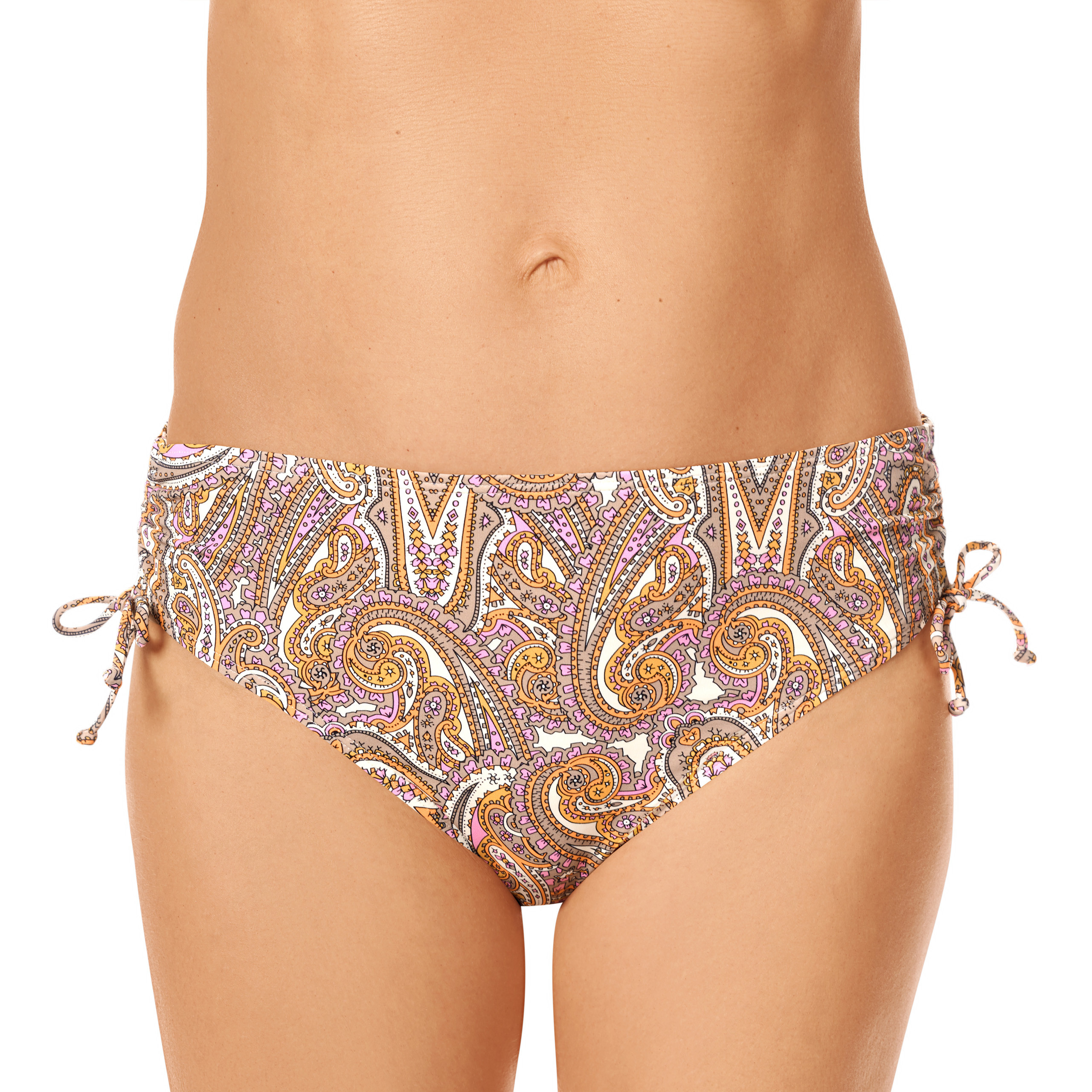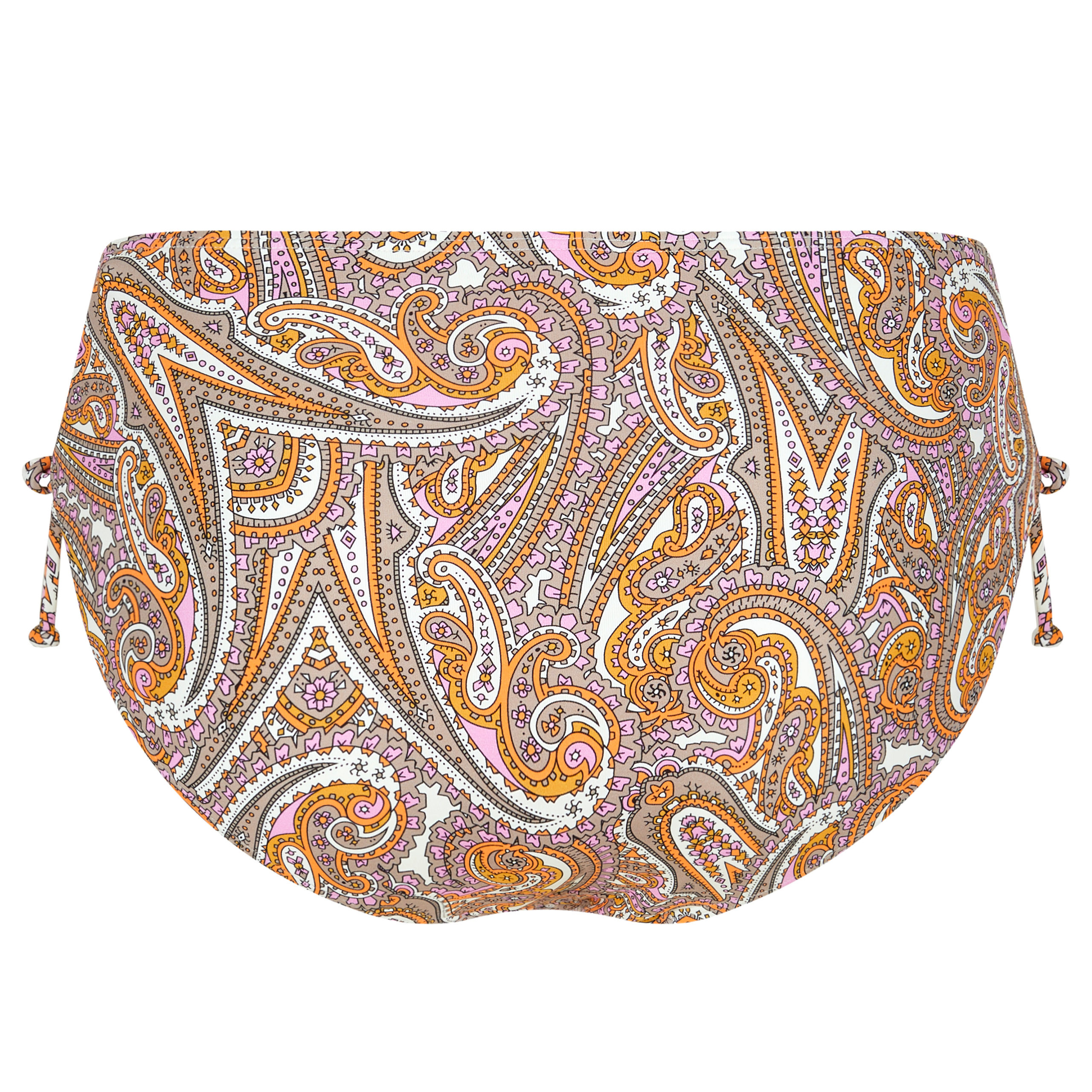 Eleganckie figi kąpielowe z wysokim stanem z pięknym nadrukiem paisley (wzór turecki z kształtem łezki). Dół od stroju kąpielowego został wykonany z miękkiej mikrofibry, która zapewnia doskonałą ochronę przed promieniowaniem UV 50+.