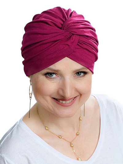 ✔ Bezuciskowa konstrukcja – turban nie posiada szwów ani twardych elementów, co czyni go idealnym wyborem dla osób z wrażliwą skórą głowy.